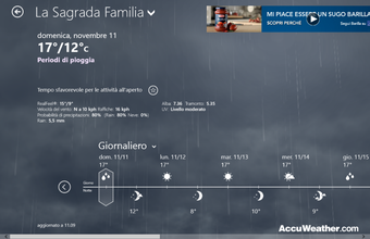 AccuWeather per Windows 8 fornisce dati meteo e previsioni del tempo sulla città di tuo interesse. Interfaccia elegante e in stile Modern.